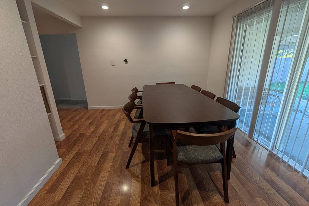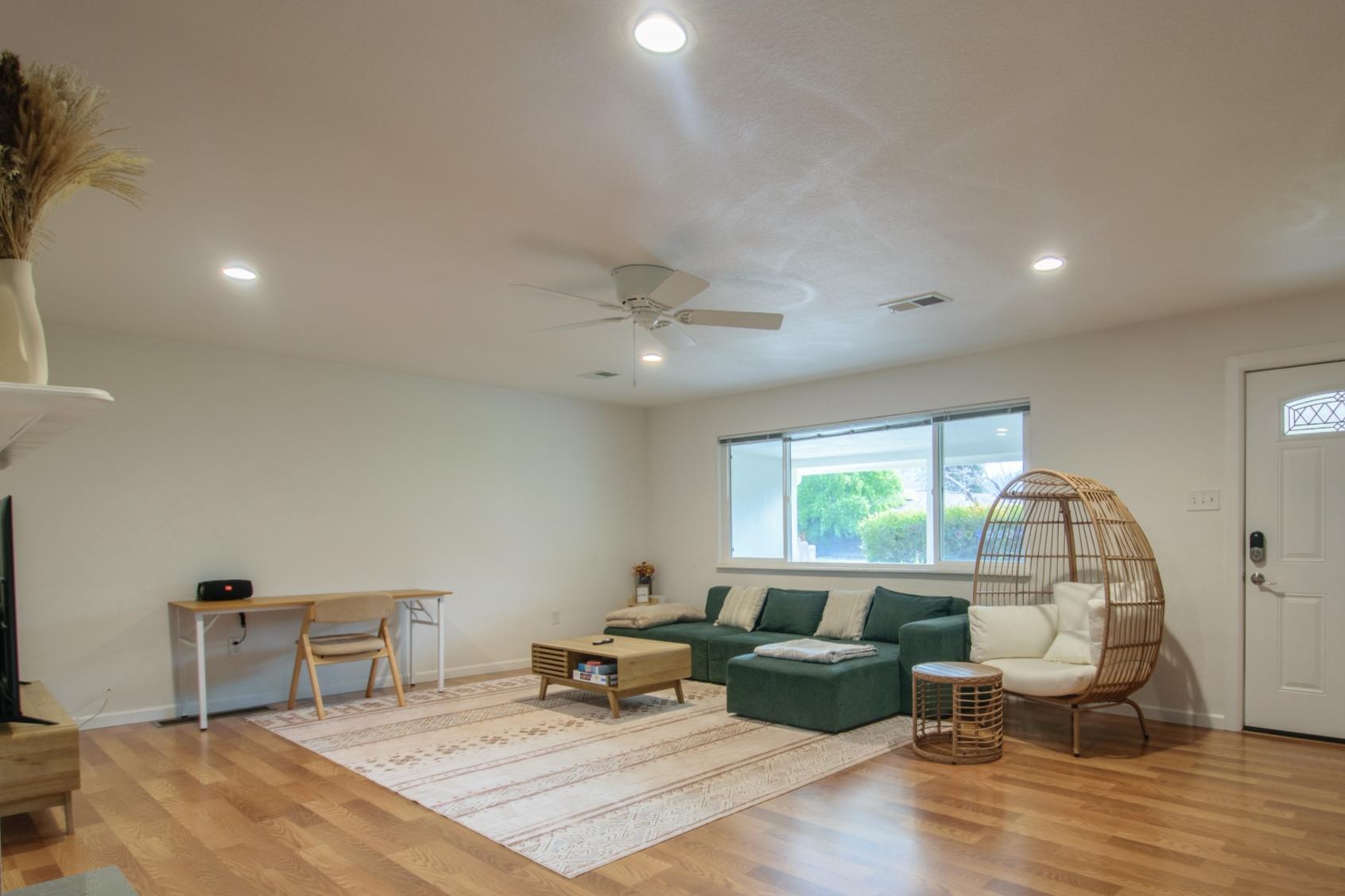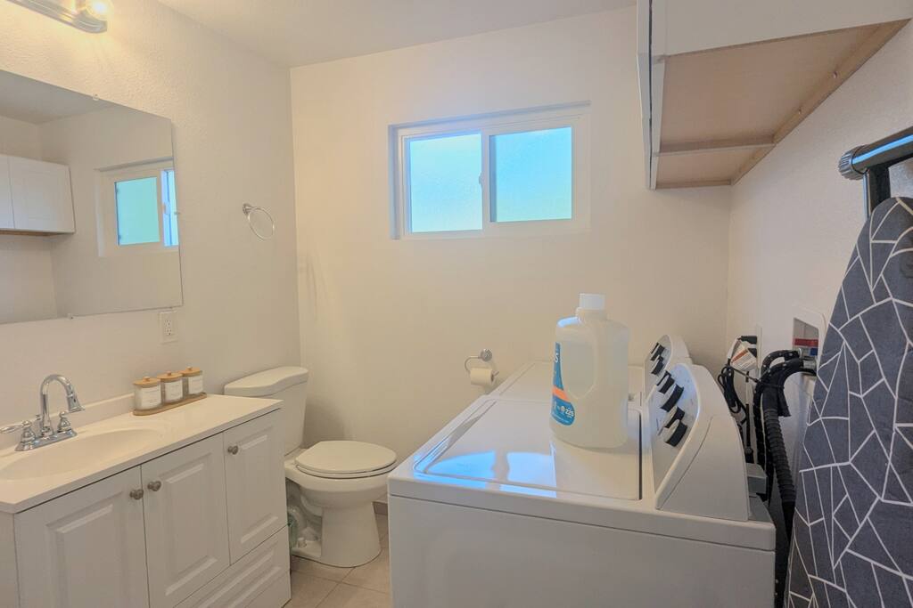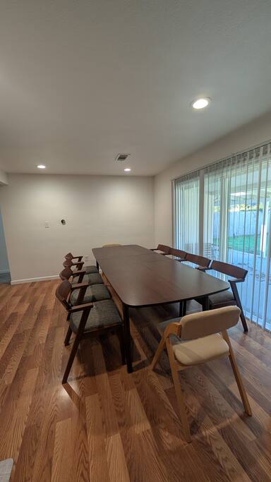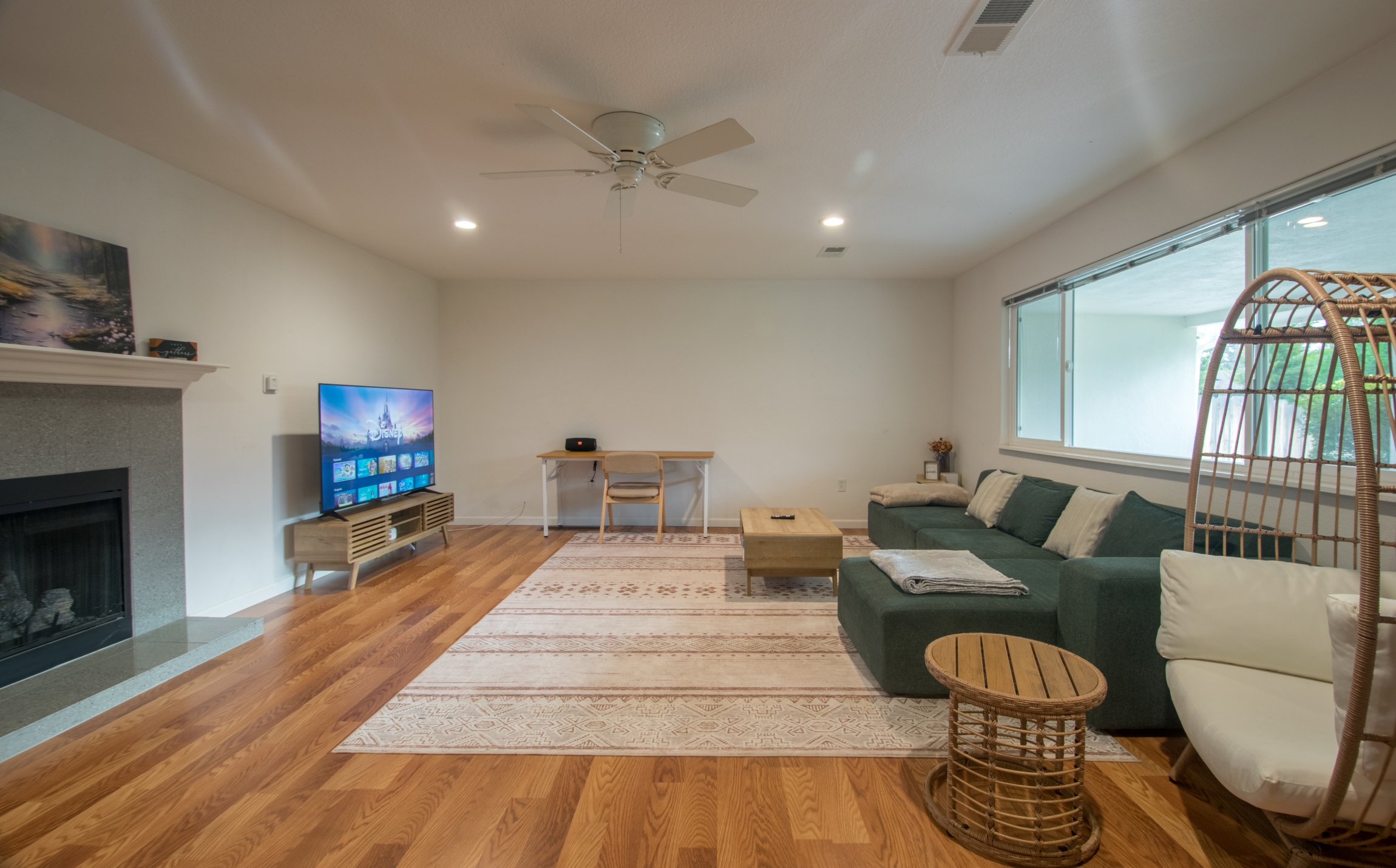 This spacious 4BD/2BA comes packed with amazing multifunctional features that will help you feel right at home. For the traveling workers: All bedrooms come equipped with a Kwikset smart lock for added privacy and security if you're traveling as a group of individual workers, and they can easily be disabled when you're traveling with family and friends. Whether you prefer a 12-cup carafe, a single-serve K-pod, coffee over ice, or hot tea, our Ninja DualBrew Pro coffeemaker can make whatever you need to fuel your day. All bedroom window shades are now upgraded to dual day/night shades--sleep in with the blackout shades or enjoy your privacy while allowing lots of natural light into the bedrooms! Each bedroom also has a HEPA air filter. All room chairs are foldable and can be used to add additional seating to the dining table, living room, or backyard so everyone can sit together in the home. The living room contains a 65" Smart TV for all your group entertainment needs. For our families traveling with little ones, we also can provide a travel crib and high chairs upon request for babies and infants--please inquire for more information! Last but certainly not least, our kitchen is fully equipped with a gas stovetop & oven, built-in microwave, dishwasher, garbage disposal, full size refrigerator, colanders, large mixing bowls, dinnerware & wine set for 8, cooking utensils, coffee machine, toaster, blender, and electric water boiler. We've got a Blackstone Griddle with built-in air fryer baskets. We've got plenty of pots, pans, bakeware, griddle tools, spices--perfect for those who love to cook while they're here. Our backyard is fully fenced for privacy, and we've got a grassy lawn and privacy hedge in the front. Whether your group members want individual privacy or togetherness on the property, we've got you.