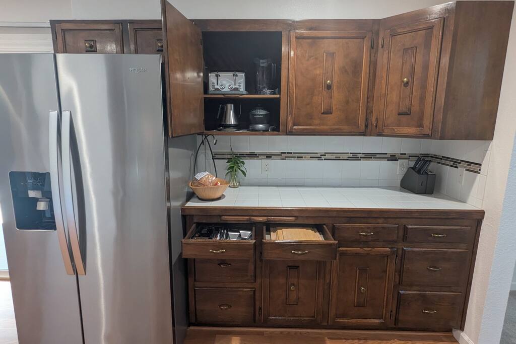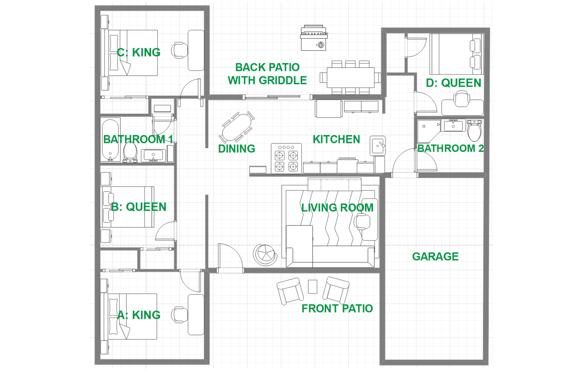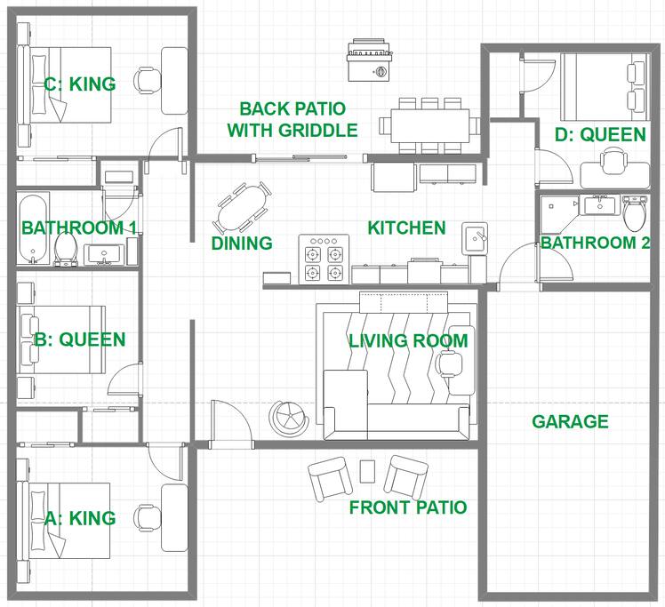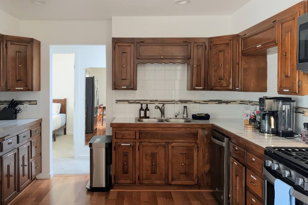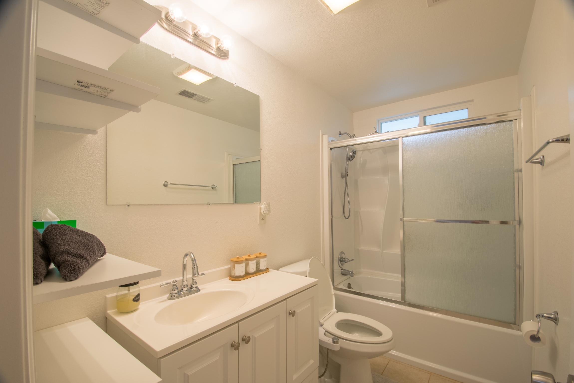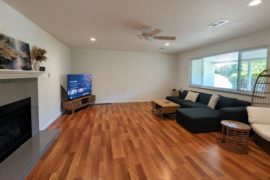 This spacious 4BD/2BA comes packed with amazing multifunctional features that will help you feel right at home. For the traveling workers: All bedrooms come equipped with a Kwikset smart lock for added privacy and security if you're traveling as a group of individual workers, and they can easily be disabled when you're traveling with family and friends. Whether you prefer a 12-cup carafe, a single-serve K-pod, coffee over ice, or hot tea, our Ninja DualBrew Pro coffeemaker can make whatever you need to fuel your day. All bedroom window shades are now upgraded to dual day/night shades--sleep in with the blackout shades or enjoy your privacy while allowing lots of natural light into the bedrooms! Each bedroom also has a HEPA air filter. All room chairs are foldable and can be used to add additional seating to the dining table, living room, or backyard so everyone can sit together in the home. The living room contains a 65" Smart TV for all your group entertainment needs. For our families traveling with little ones, we also can provide a travel crib and high chairs upon request for babies and infants--please inquire for more information! Last but certainly not least, our kitchen is fully equipped with a gas stovetop & oven, built-in microwave, dishwasher, garbage disposal, full size refrigerator, colanders, large mixing bowls, dinnerware & wine set for 8, cooking utensils, coffee machine, toaster, blender, and electric water boiler. We've got a Blackstone Griddle with built-in air fryer baskets. We've got plenty of pots, pans, bakeware, griddle tools, spices--perfect for those who love to cook while they're here. Our backyard is fully fenced for privacy, and we've got a grassy lawn and privacy hedge in the front. Whether your group members want individual privacy or togetherness on the property, we've got you.